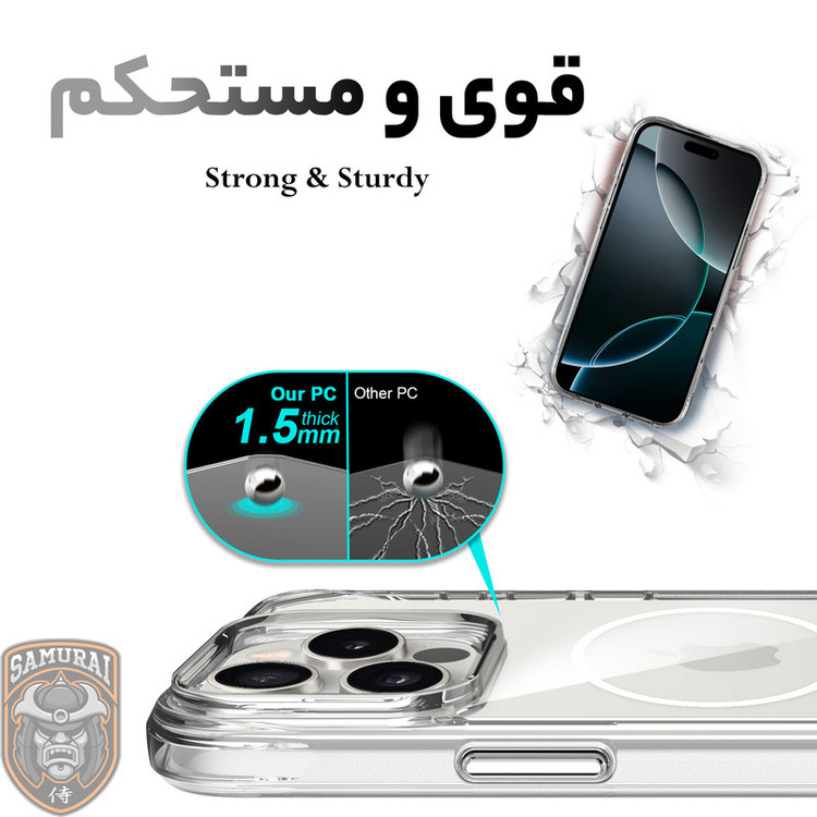 قاب سامورایی مدل Apex مخصوص گوشی Apple iPhone 16 Pro Max با طراحی شفاف و ساختهشده از پلیکربنات ضدخش، ظاهر اصلی گوشی را بهزیبایی نمایش میدهد و در برابر خط و خش و زرد شدن مقاوم است. این قاب با داشتن پشتیبانی از MagSafe، امکان اتصال آسان به شارژر و لوازم جانبی مغناطیسی را فراهم میکند.دکمههای نرم، طراحی سبک و خوشدست، و حبابهای ضدضربه برای محافظت بیشتر، این قاب را به انتخابی عالی برای حفظ زیبایی و امنیت گوشی شما تبدیل کرده است.