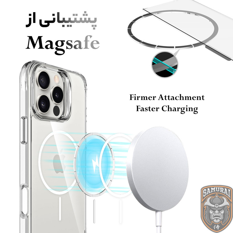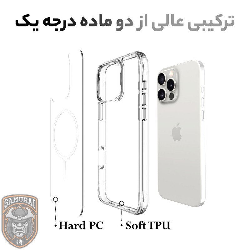 قاب سامورایی مدل Apex مخصوص گوشی Apple iPhone 16 Pro Max با طراحی شفاف و ساختهشده از پلیکربنات ضدخش، ظاهر اصلی گوشی را بهزیبایی نمایش میدهد و در برابر خط و خش و زرد شدن مقاوم است. این قاب با داشتن پشتیبانی از MagSafe، امکان اتصال آسان به شارژر و لوازم جانبی مغناطیسی را فراهم میکند.دکمههای نرم، طراحی سبک و خوشدست، و حبابهای ضدضربه برای محافظت بیشتر، این قاب را به انتخابی عالی برای حفظ زیبایی و امنیت گوشی شما تبدیل کرده است.