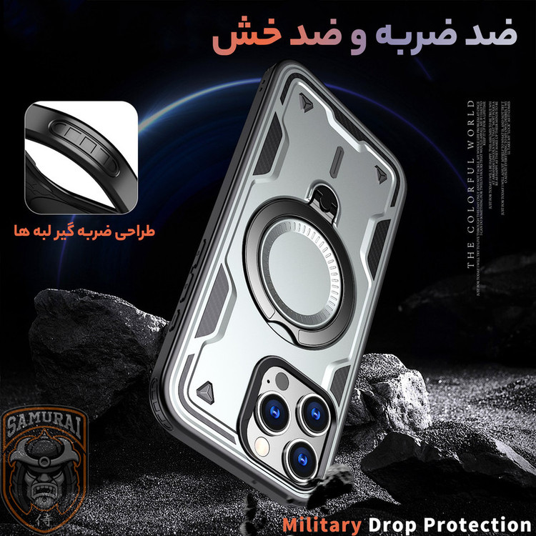 قاب اپل آیفون 16 پرو مدل Standra از برند سامورایی یک گزینه حرفهای، مقاوم و شیک برای محافظت از گوشی شماست. این قاب با طراحی مدرن و چندکاره، دارای حلقه مغناطیسی N52 قوی، پایه چرخان 360 درجه، استند تاشو و محافظت نظامی در برابر ضربه است. تقویتشده با ایربگ چهارگوشه، قاب Apple iPhone 16 Pro محافظت حداکثری در برابر افتادن و ضربه را تضمین میکند. با پشتیبانی از انواع لوازم جانبی مغناطیسی و قابلیت ایستادن در حالت عمودی یا افقی، استفاده از گوشی برای مطالعه، تماشا فیلم یا تماس تصویری را بسیار راحتتر میکند.اگر بهدنبال یک قاب مقاوم، کاربردی هستید، این گزینه برای Apple iPhone 16 Pro بهترین انتخاب است.