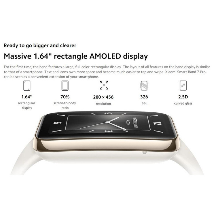 شیائومی در کنار گوشیهای سری 12S از مچبند هوشمند می بند 7 پرو هم رونمایی کرد. این مچبند از نمایشگر 1.64 اینچی بهره میبرد که عریضتر از نمایشگر می بند 7 است. تراکم پیکسلی این نمایشگر 326 پیکسل در هر اینچ است که در نتیجه کیفیت بسیار خوبی را ارائه میکند. این نمایشگر از رزولوشن 280 در 456 پیکسل بهره میبرد که برای مقایسه باید بگوییم نمایشگر می بند 7 از رزولوشن 192 در 490 پشتیبانی میکند. یکی از مهمترین ویژگیهای این مچبند، بهرهگیری آن از GPS داخلی است که بسیاری از مچبندهای هوشمند-مانند می بند 7-چنین مشخصهای را ارائه نمیکنند. بر روی بدنه یک سنسور برای تشخیص نور محیط هم تعبیه شده تا نمایشگر با توجه وضعیت محیط اطراف بتواند روشنایی خود را کم و زیاد کند. شیائومی می بند 7 پرو میتواند در تمام ساعات شبانهروز اکسیژن خون و ضربان قلب را مورد بررسی قرار دهد و در زمینهی پایش خواب هم از امکانات زیادی بهره میبرد.